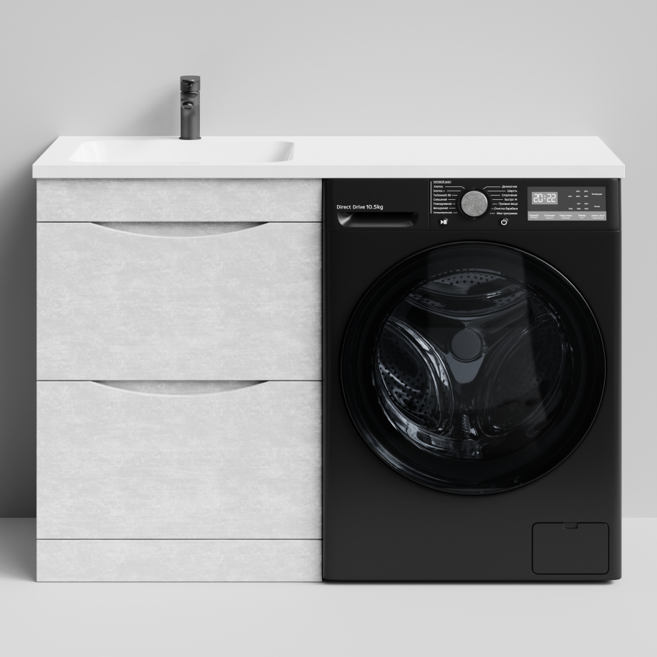 Тумба Vod-ok 58 с раковиной Смайл 120 напольная, под стиральную машину, левая, Белый камень