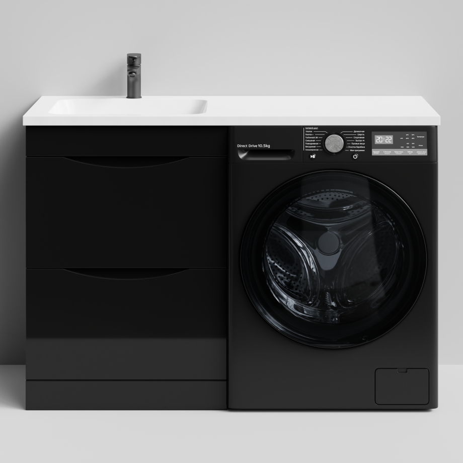 Тумба Vod-ok 58 с раковиной Смайл 120 напольная, под стиральную машину, левая, черный глянец