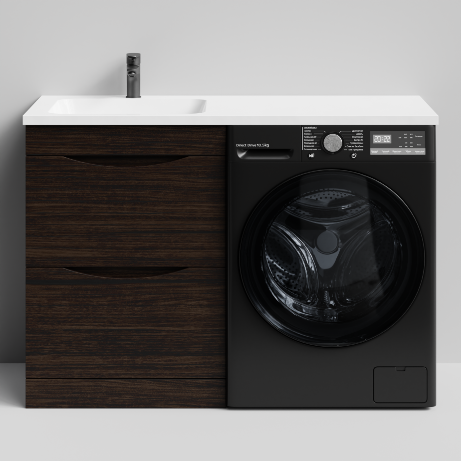 Тумба Vod-ok 58 с раковиной Смайл 120 напольная, под стиральную машину, левая, Палисандр