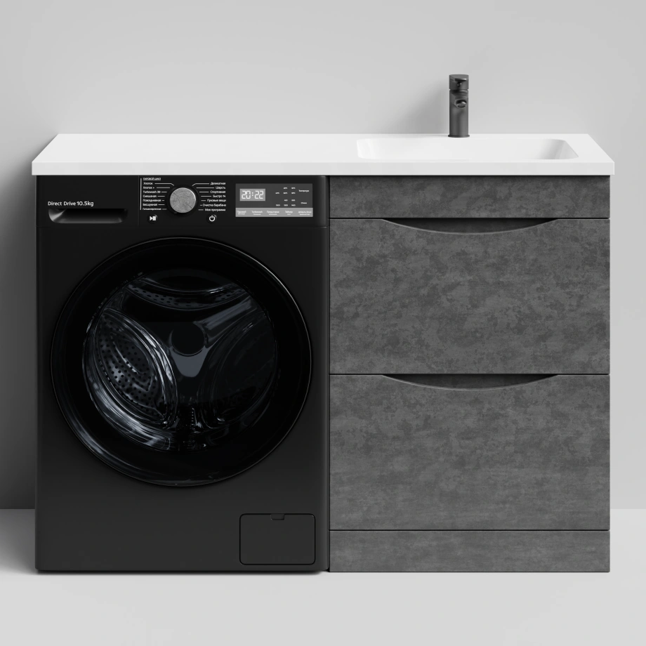 Тумба Vod-ok 58 с раковиной Смайл 120 напольная, под стиральную машину, правая, Серый камень