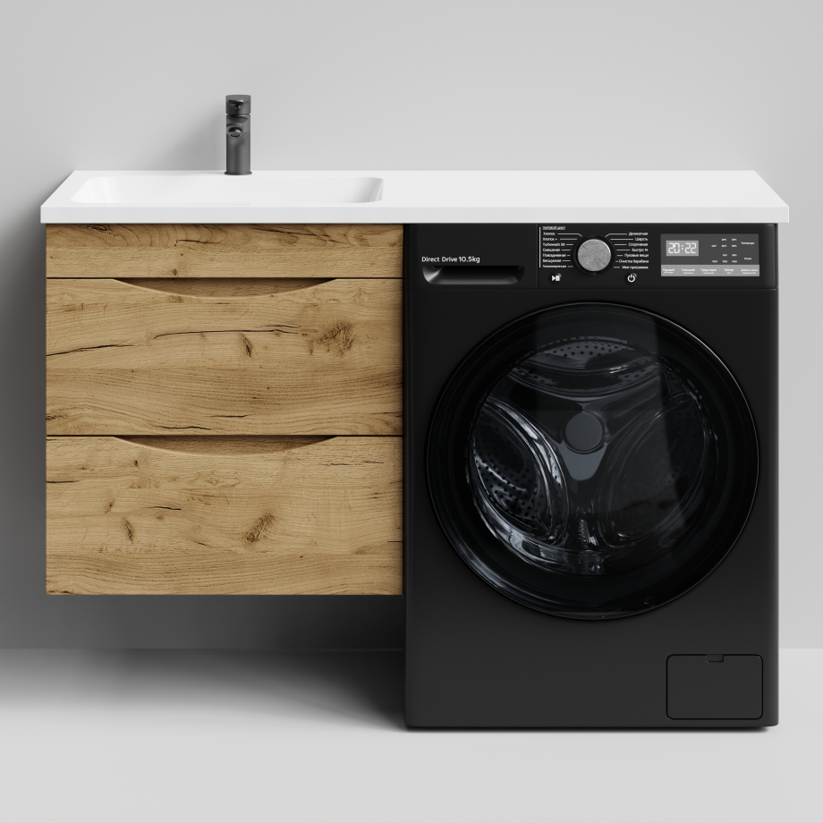 Тумба Vod-ok 58 с раковиной Смайл 120 подвесная, под стиральную машину, левая, Дуб Тортуга