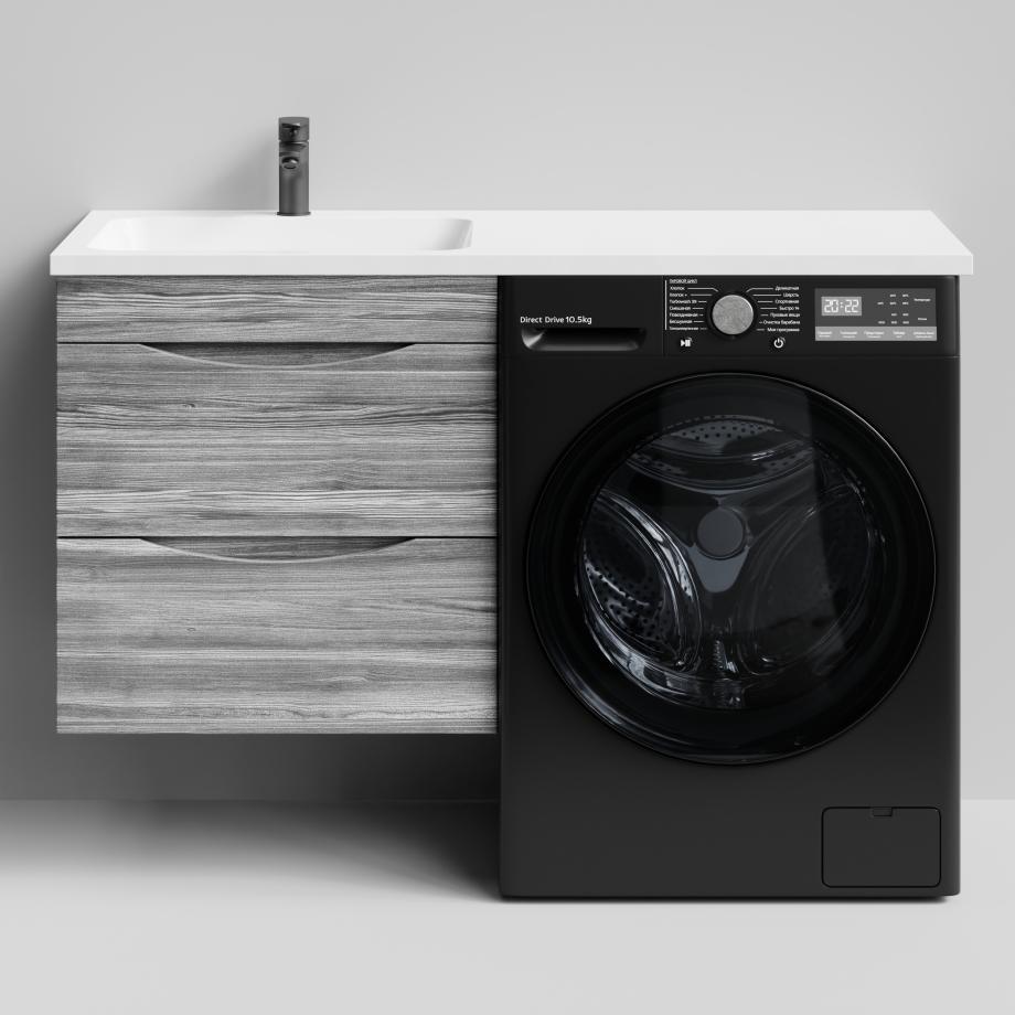 Тумба Vod-ok 58 с раковиной Смайл 120 подвесная, под стиральную машину, левая, Лиственница структурная контрастно-серая