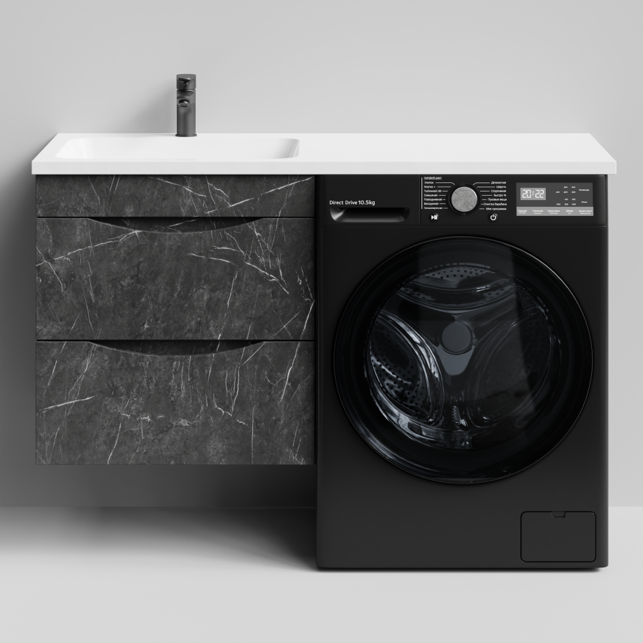 Тумба Vod-ok 58 с раковиной Смайл 120 подвесная, под стиральную машину, левая, Мрамор Графит софт тач