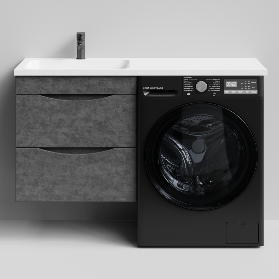 Тумба Vod-ok 58 с раковиной Смайл 120 подвесная, под стиральную машину, левая, Серый камень