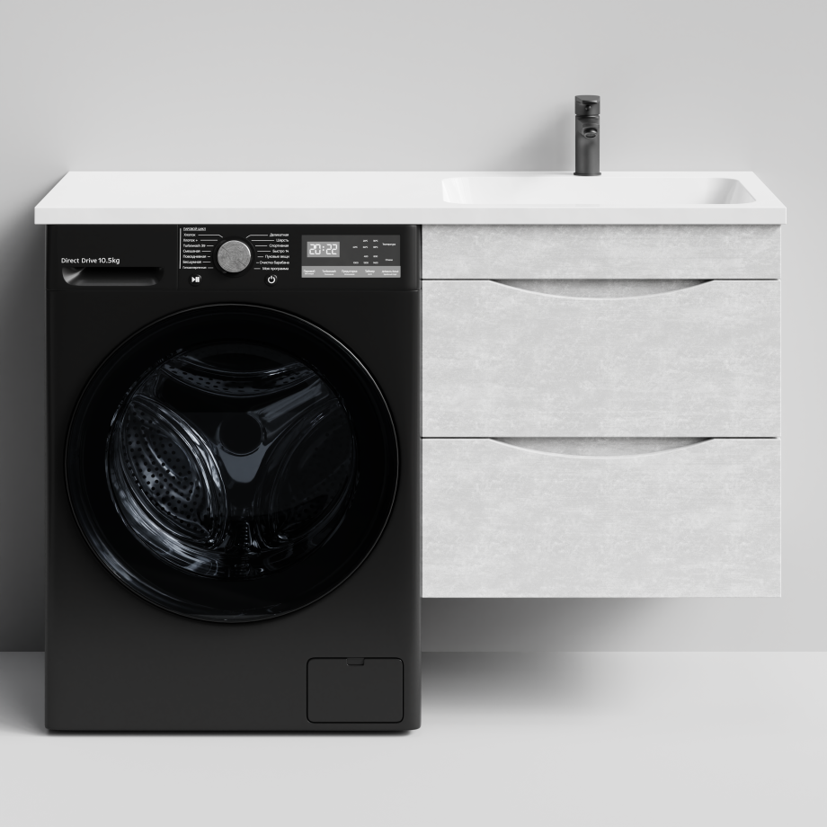 Тумба Vod-ok 58 с раковиной Смайл 120 подвесная, под стиральную машину, правая, Белый камень
