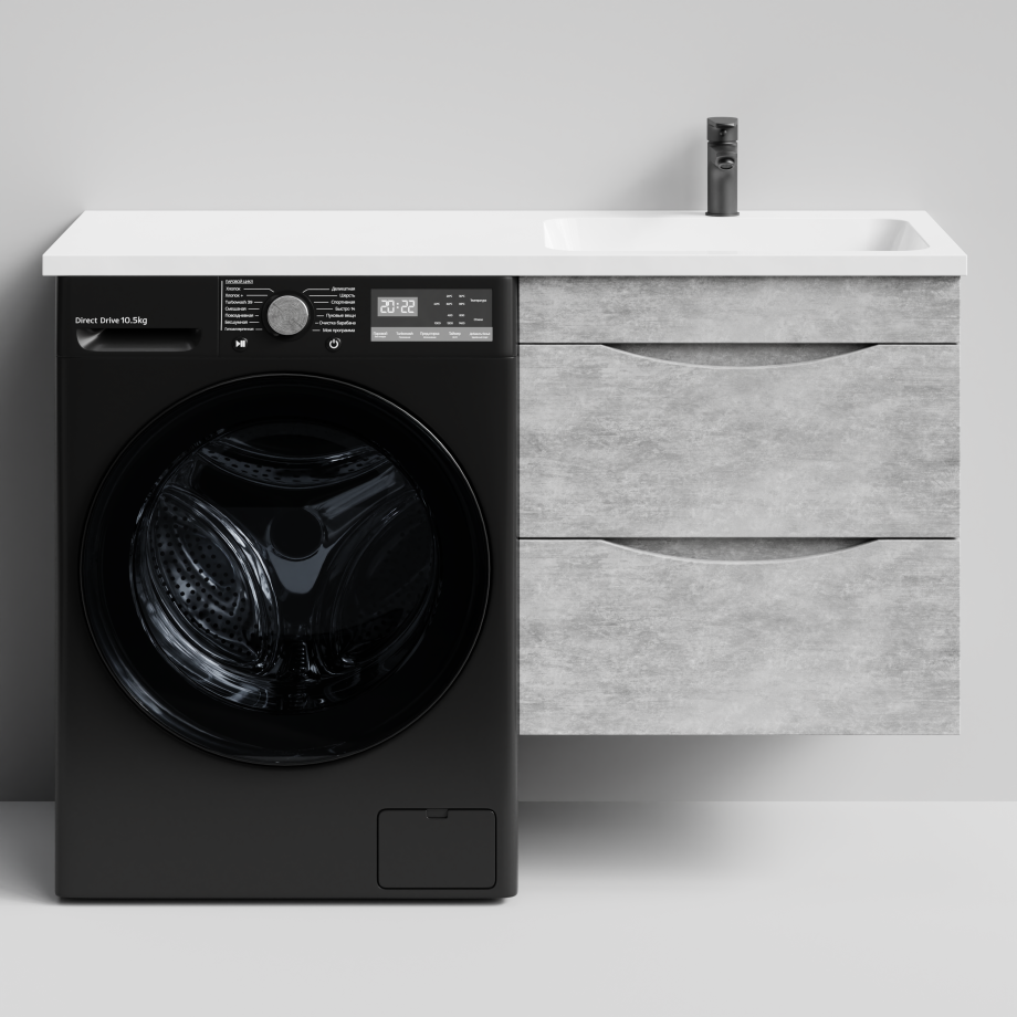 Тумба Vod-ok 58 с раковиной Смайл 120 подвесная, под стиральную машину, правая, Горный камень