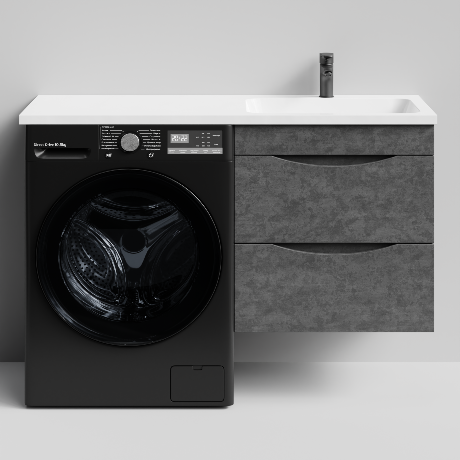 Тумба Vod-ok 58 с раковиной Смайл 120 подвесная, под стиральную машину, правая, Серый камень