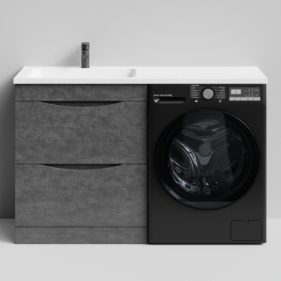 Тумба Vod-ok 68 с раковиной Смайл 130 напольная, под стиральную машину, левая, Серый камень