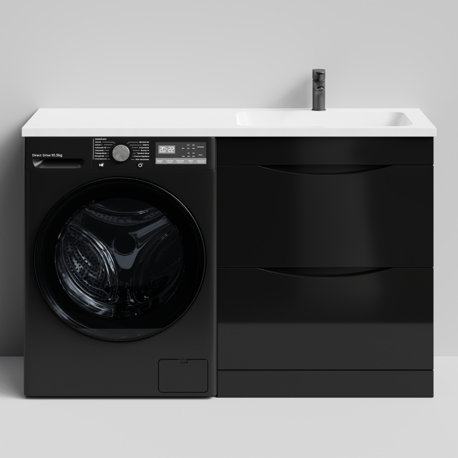 Тумба Vod-ok 68 с раковиной Смайл 130 напольная, под стиральную машину, правая, черный глянец
