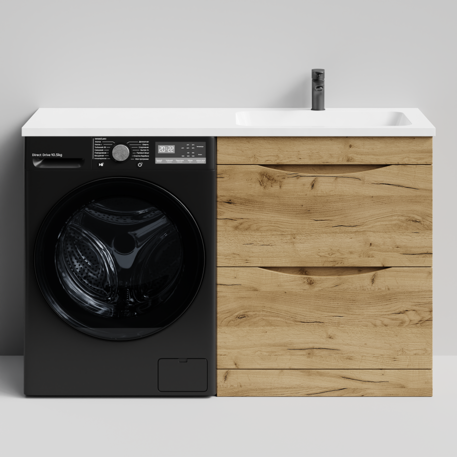 Тумба Vod-ok 68 с раковиной Смайл 130 напольная, под стиральную машину, правая, Дуб Тортуга