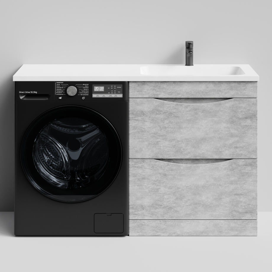Тумба Vod-ok 68 с раковиной Смайл 130 напольная, под стиральную машину, правая, Горный камень