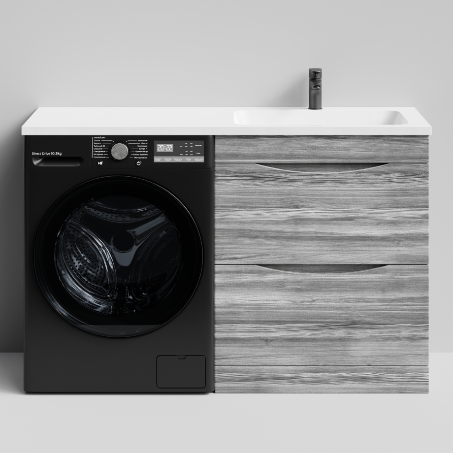 Тумба Vod-ok 68 с раковиной Смайл 130 напольная, под стиральную машину, правая, Лиственница структурная контрастно-серая