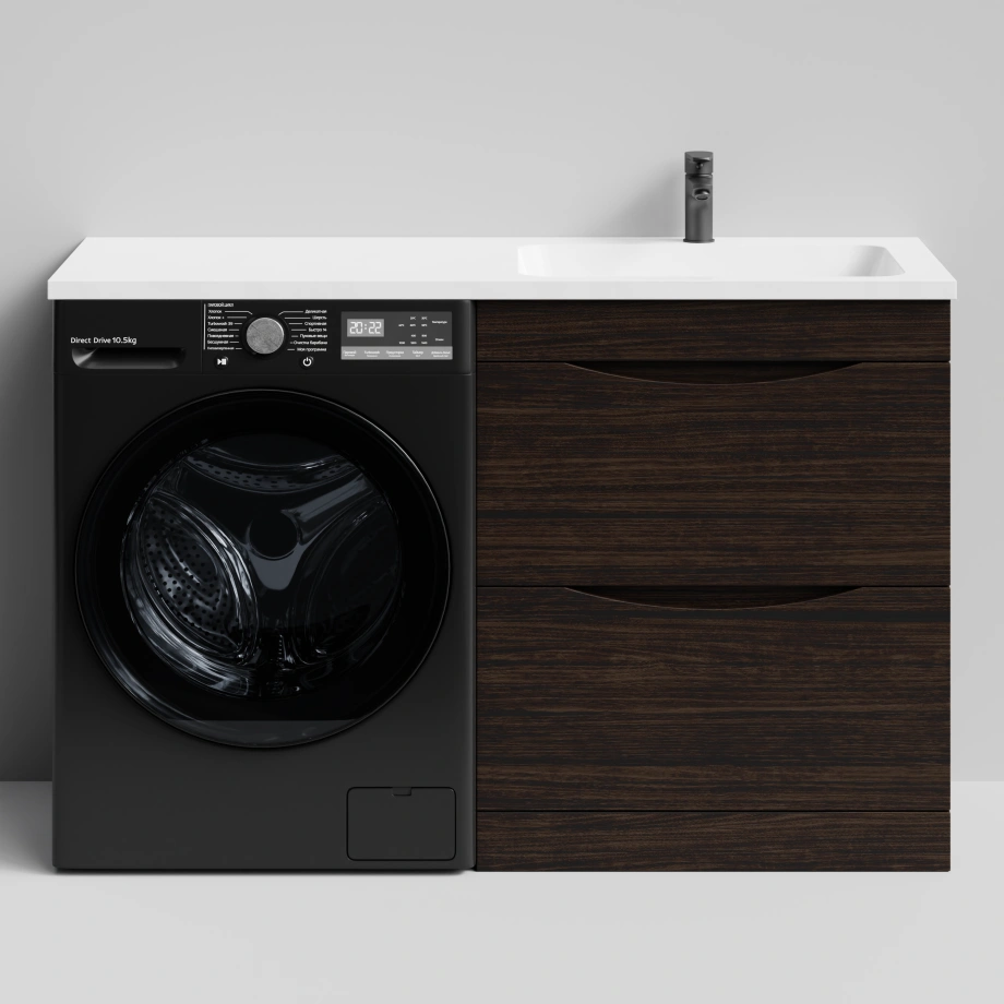 Тумба Vod-ok 68 с раковиной Смайл 130 напольная, под стиральную машину, правая, Палисандр