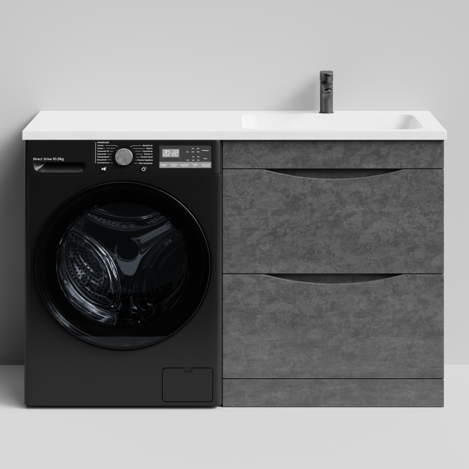 Тумба Vod-ok 68 с раковиной Смайл 130 напольная, под стиральную машину, правая, Серый камень