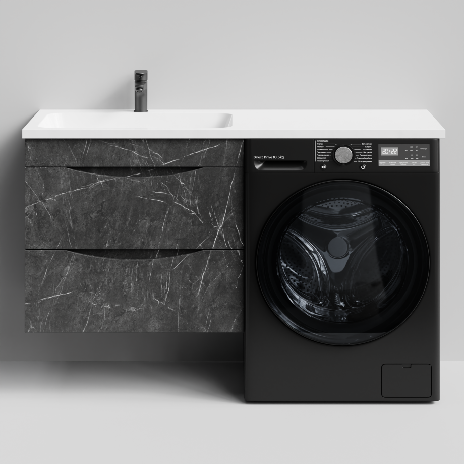 Тумба Vod-ok 68 с раковиной Смайл 130 подвесная, под стиральную машину, левая, Мрамор Графит софт тач