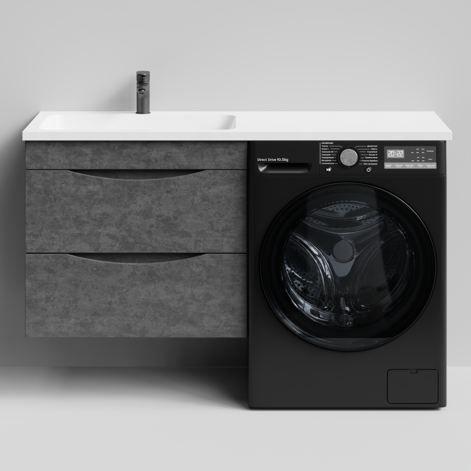 Тумба Vod-ok 68 с раковиной Смайл 130 подвесная, под стиральную машину, левая, Серый камень