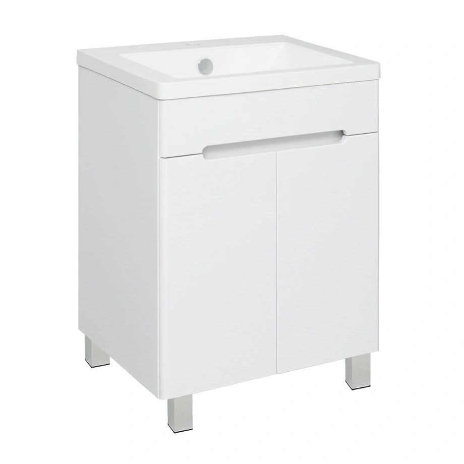 Тумба напольная Runo Парма 60 2 двери, с раковиной Omega 60, белый (АКЦИЯ) 1 шт.