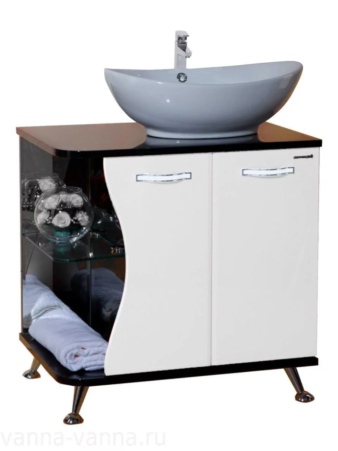 Тумба напольная с накладной раковиной 70 правая, белая с черным