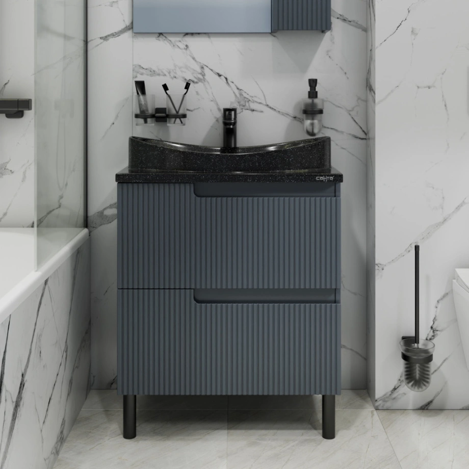 Тумба напольная Санта Альтаир 70 с раковиной Альтаир 70, 2 ящика, графит матовый