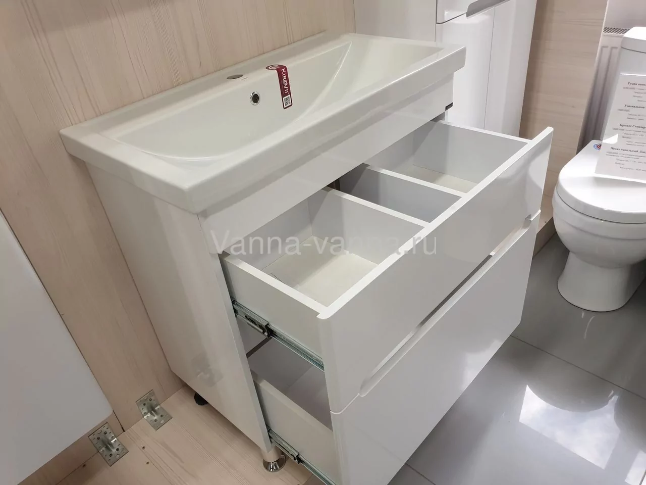 Тумба напольная Санта Лондон 100 с раковиной Фостер 100, 2 ящика, белая