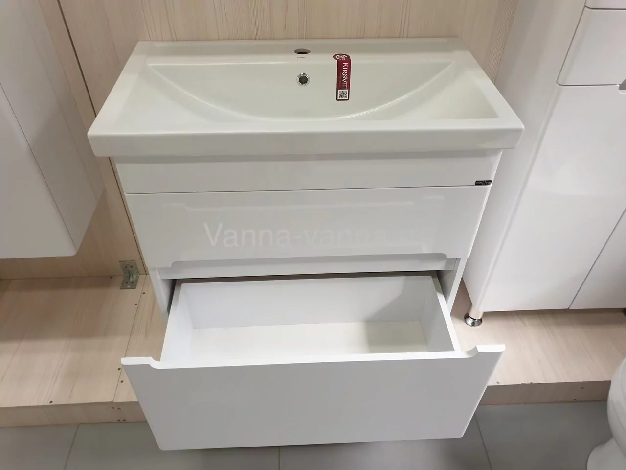 Тумба напольная Санта Лондон 100 с раковиной Фостер 100, два ящика, белая.