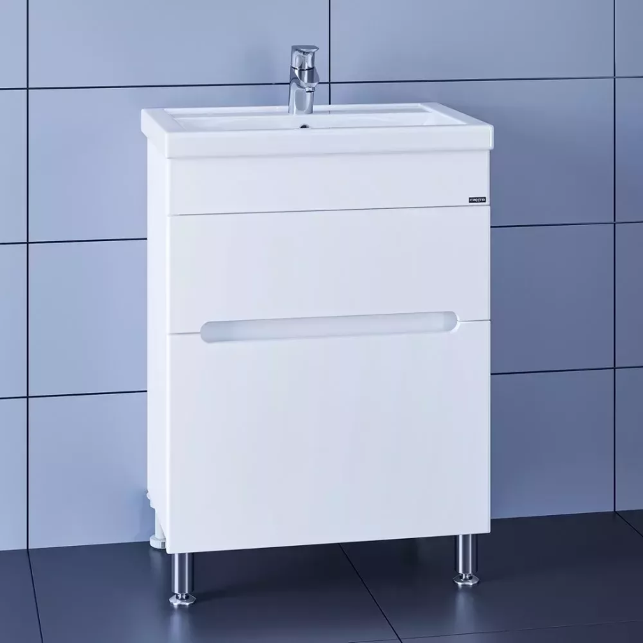 Тумба напольная Санта Лондон 60 с раковиной Фостер 60, 2 ящика, белая