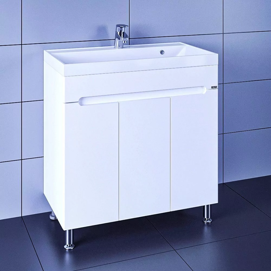 Тумба напольная Санта Лондон 80 с раковиной Classic 80, три двери, белая.