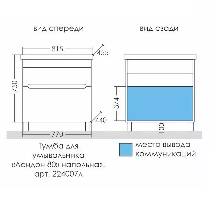 Тумба с раковиной для ванной Санта Лондон 80 см напольная.