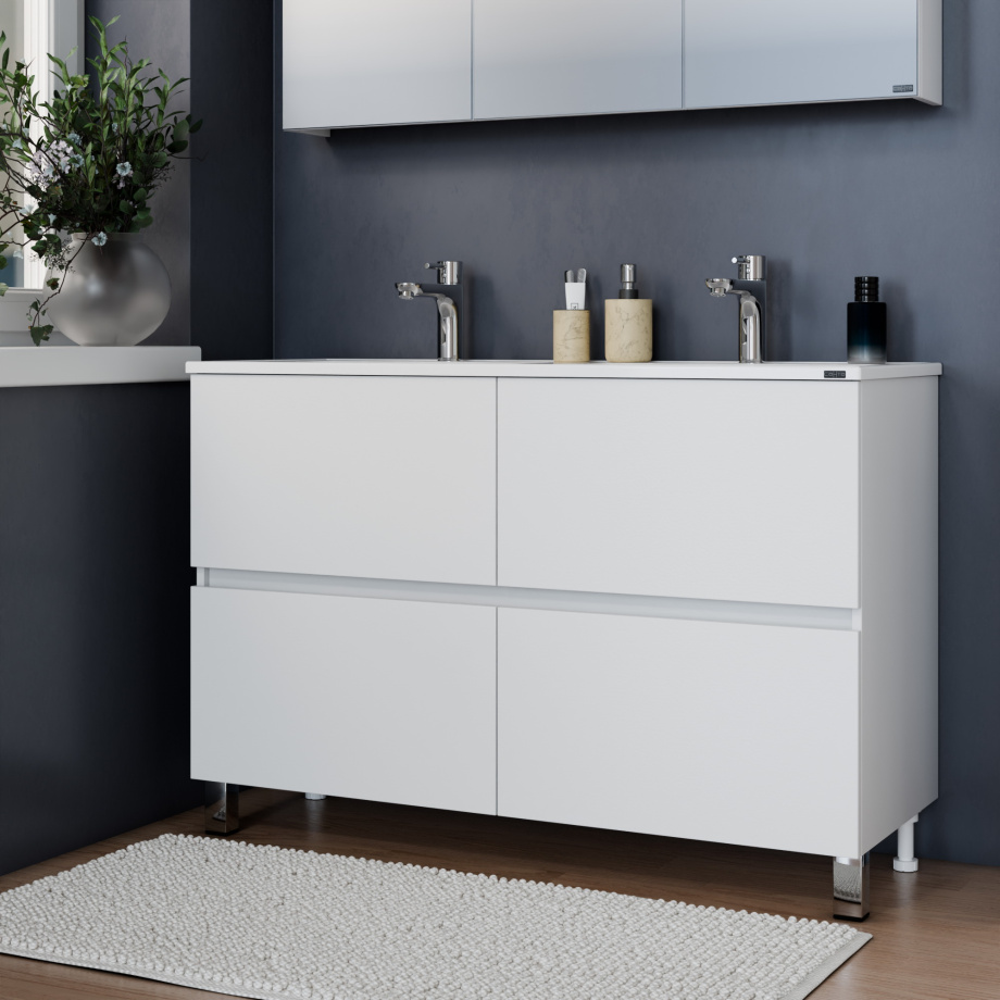 Тумба напольная Санта Марс 120 с раковиной Венера 120, 4 ящика, белая