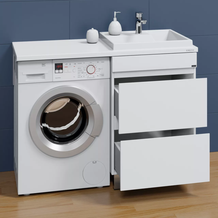 Тумба под стиральную машину Марс 59 напольная, два ящика, с раковиной Юпитер 1200 Санта правая (чаша справа).