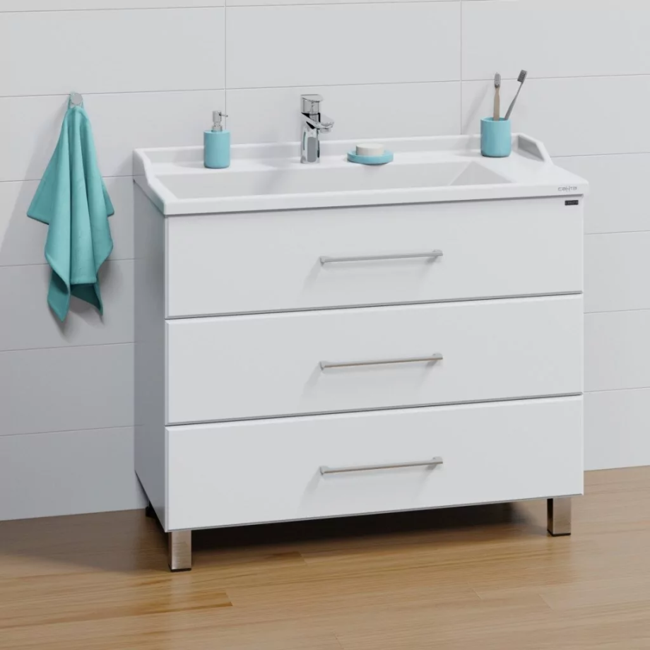 Тумба напольная Санта Омега 100 с раковиной Сириус 100, 3 ящика, белая