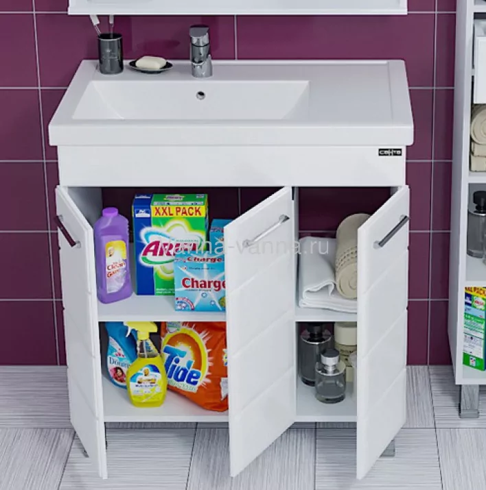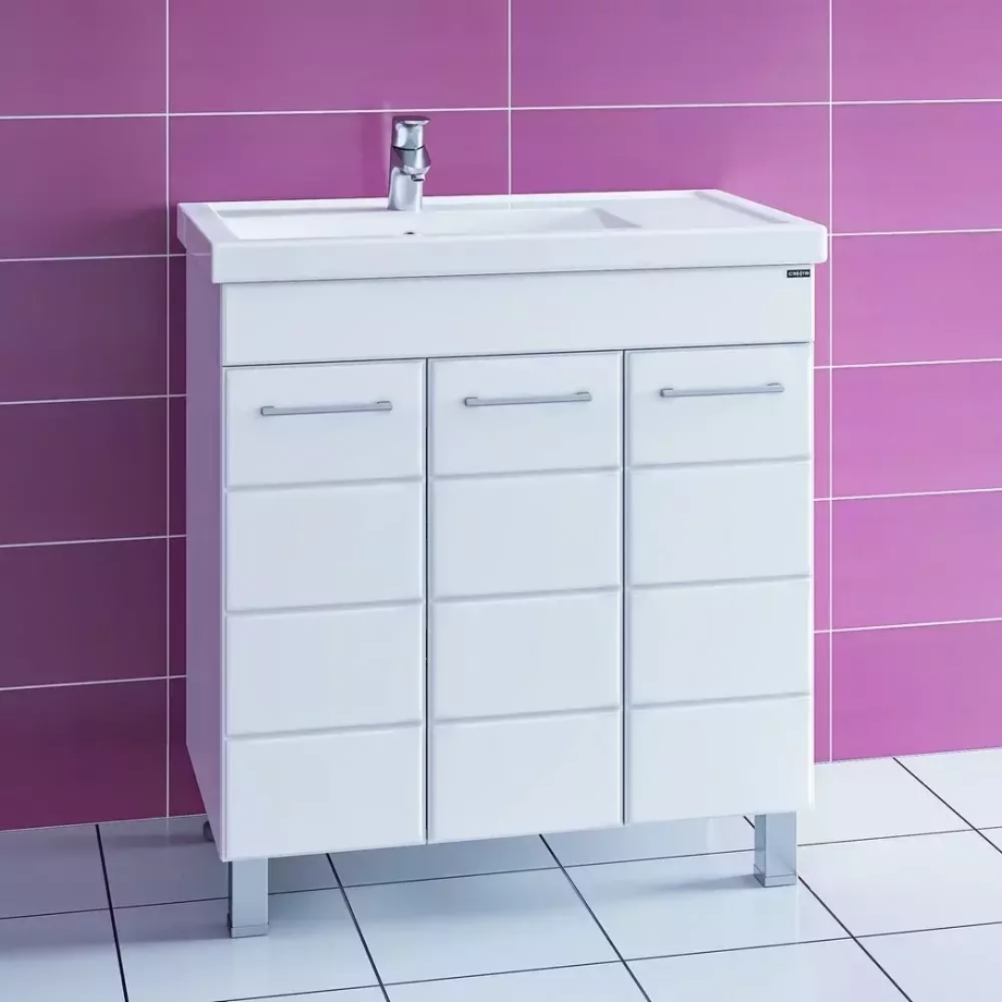 Тумба напольная Санта Омега 80 с раковиной со смещенной чашей Фостер 80П, белая