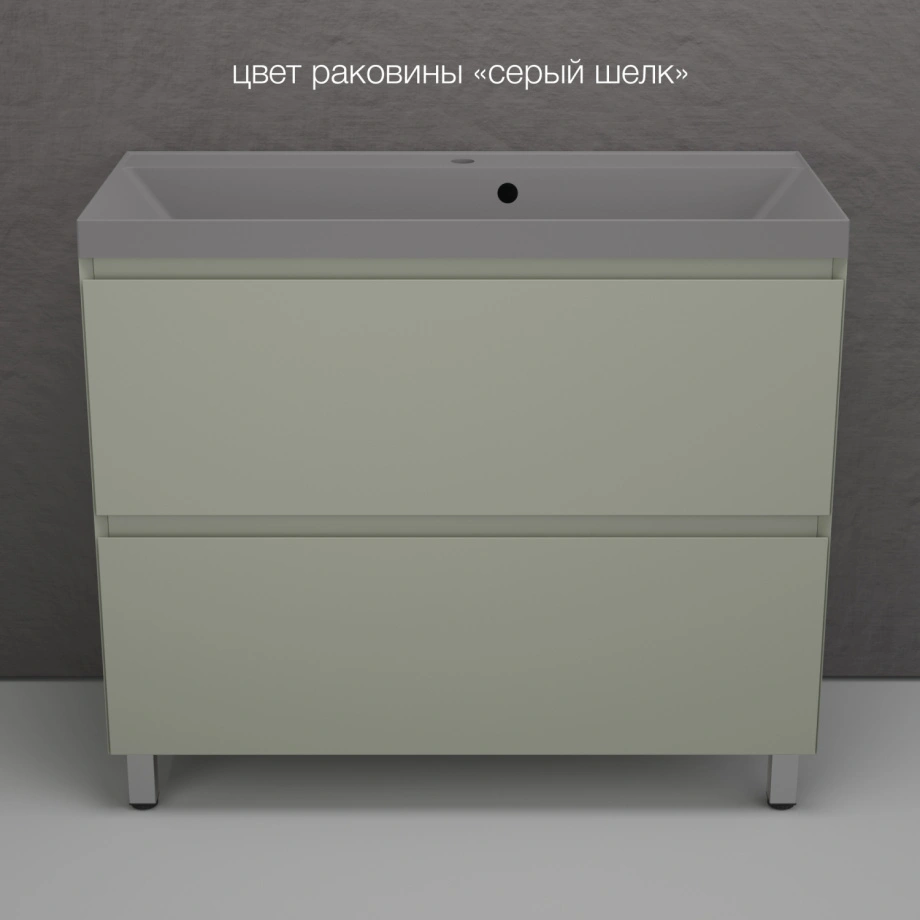 Тумба напольная Style Line Манхэттен 100 Эмаль, с раковиной Asti 100 кварц/серый шелк, олива