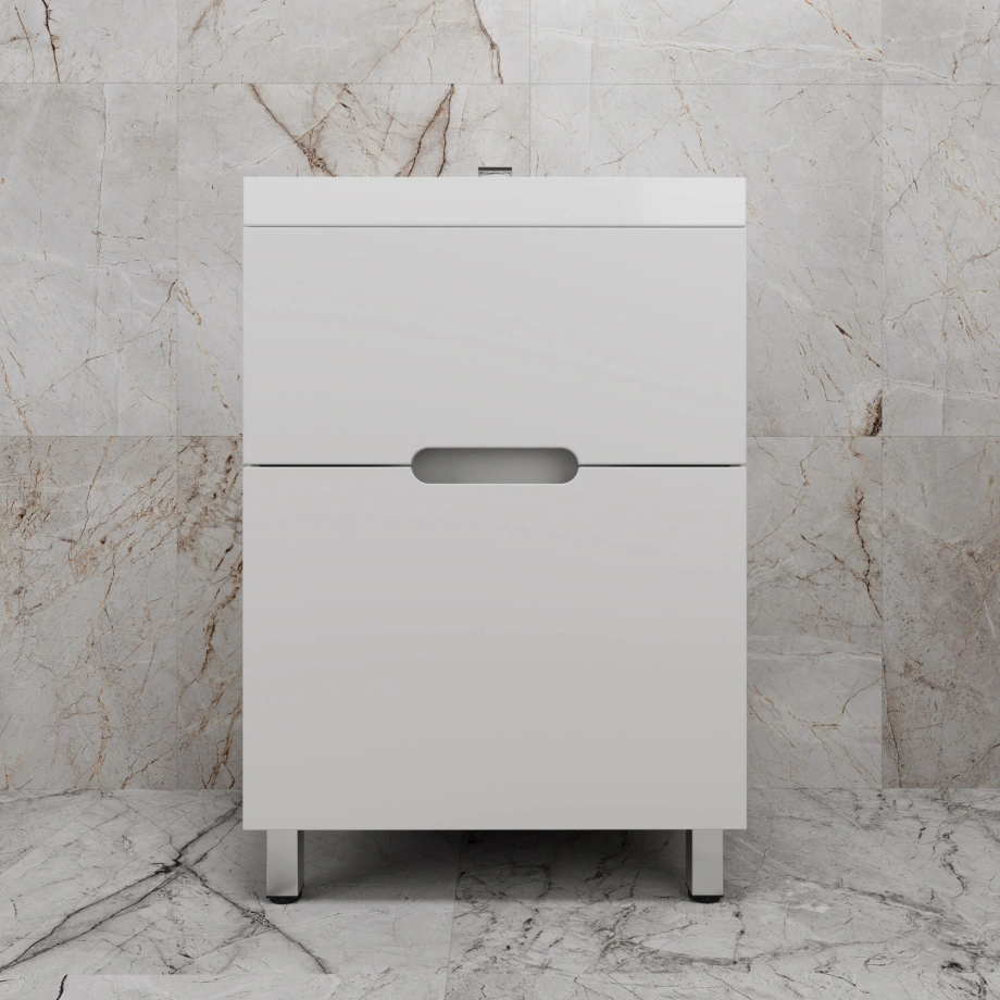 Тумба напольная Style Line "Матис 60" с раковиной ASTI 60 белый, (2 ящика), Белый матовый.