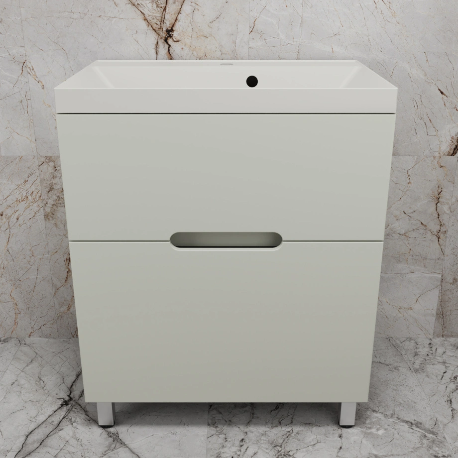 Тумба напольная Style Line "Матис 70" с раковиной ASTI 70 кварц, жасмин, (2 ящика), Олива.
