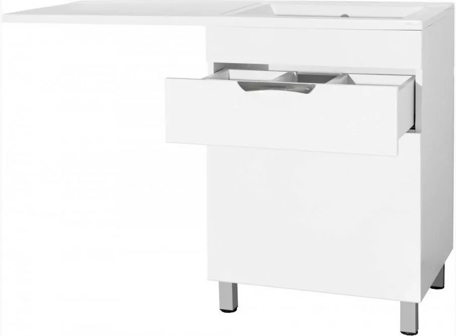 Тумба напольная Style Line Жасмин 60 с раковиной 120 Даллас Люкс PLUS R под стиральную машину, с корзиной, белая