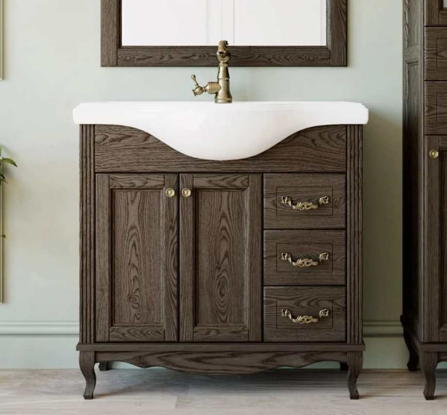 Тумба напольная ValenHouse Эллина 80 с раковиной Erica 80, три ящика, кальяри, бронза.