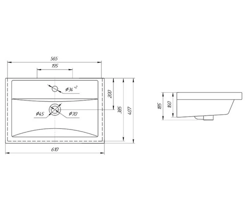 Размер раковины Kirovit Фостер 60: 610x407 мм. Материал: фаянс. Для сифона диаметром: 3.2 см. Донный клапан необходимо приобрести отдельно. Слив-перелив в комплекте.