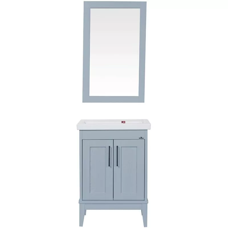 Тумба напольная ValenHouse Эйвори 60 с раковиной Грейс 60, 2 двери, серый
