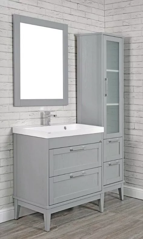 Тумба для комплекта ValenHouse Эйвори 80, серая. Габариты (Ш Г В): 81,1 x 45 x 82,1 см. Напольная. С механизмом доводчика, обеспечивающим плавное закрывание. Материал корпуса: МДФ / массив ясеня. Покрытие корпуса: эмаль. Материал фасада: массив ясеня. Покрытие фасада: эмаль. Цвет фурнитуры: хром. Ящики. Гарантия: 5 лет. Россия.