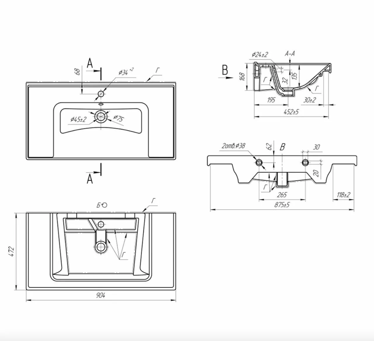 Размер раковины Грэйс 90: 904х472 мм. Материал: фаянс. Слив-перелив в комплекте.