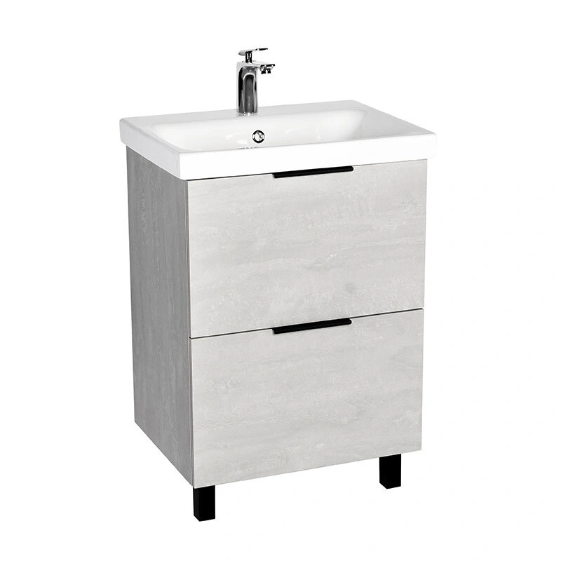 Тумба напольная Viant Берлин 60 с раковиной Moduo 60, 2 ящика, цемент.