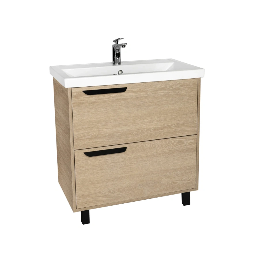 Тумба напольная Viant Кельн 80 с раковиной Фостер 80, два ящика, светлое дерево.