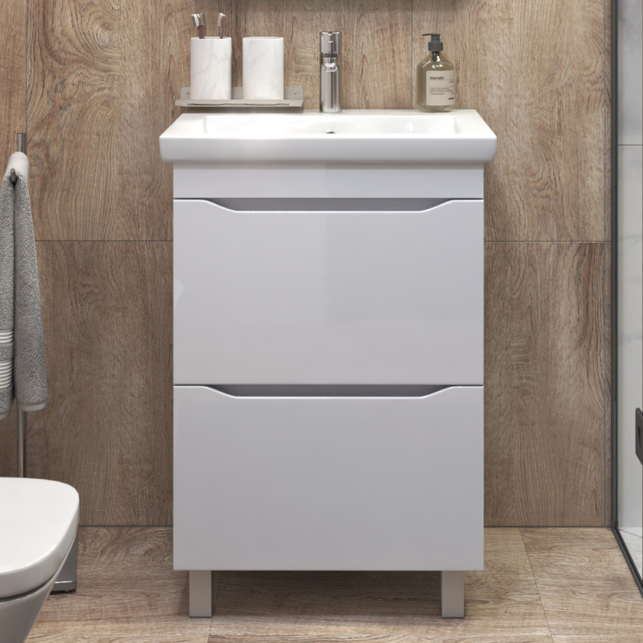Тумба напольная Vigo Grani 600-0-2 с раковиной Como 60, 2 ящика, белый
