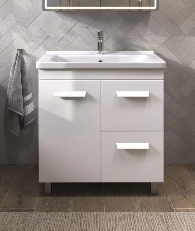 Тумба напольная Vigo Nova 70 с раковиной Миранда 70, 2 ящика, 1 дверь, белый.