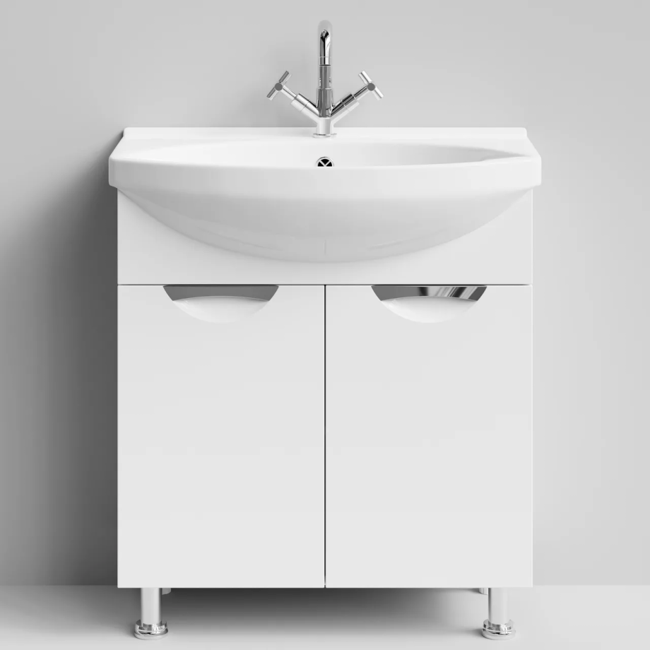 Тумба напольная Vod-ok Лира 75 с раковиной Лагуна 75, две двери, белая.