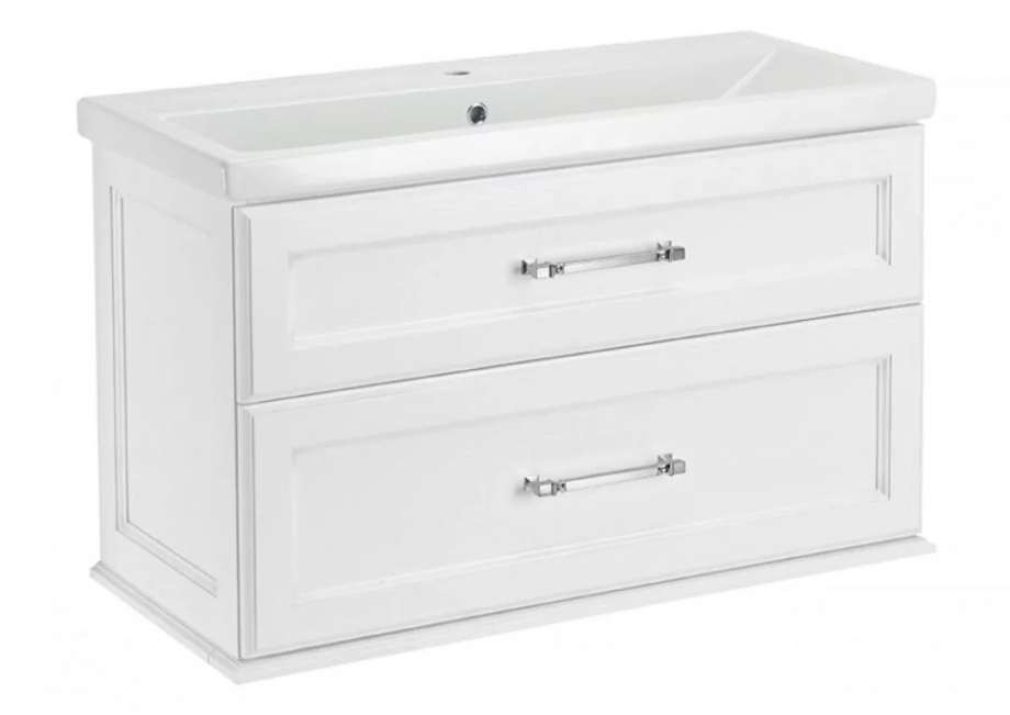 Тумба подвесная 2 ящика ASB Woodline Венеция 100 с раковиной Фостер 100, белый, патина серебро
