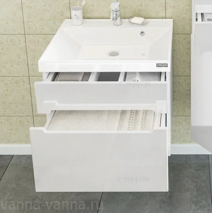 Тумба подвесная Санта Лондон 60 с раковиной Classic 60, 2 ящика, белая