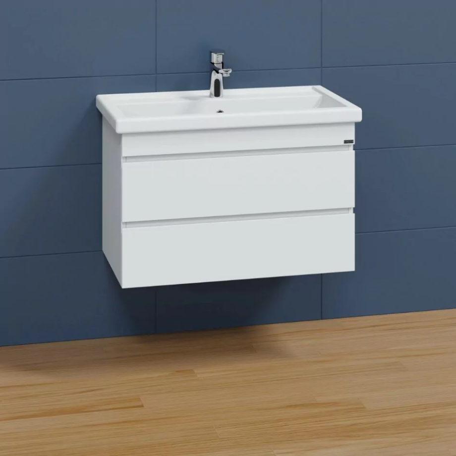 Тумба подвесная Санта Марс 80 с раковиной Фостер 80, 2 ящика, белая.