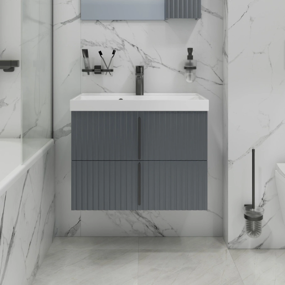 Тумба подвесная Санта Юпитер 70 с раковиной Астория 70, 2 ящика, графит матовый